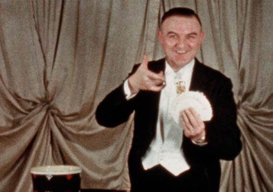 Dell is performing “Fresh Fish” in the early Forties. Invented by magician Arnold Furst, the torn-and-restored paper effect starts with a sign that reads “Fresh Fish Sold Here Today.”