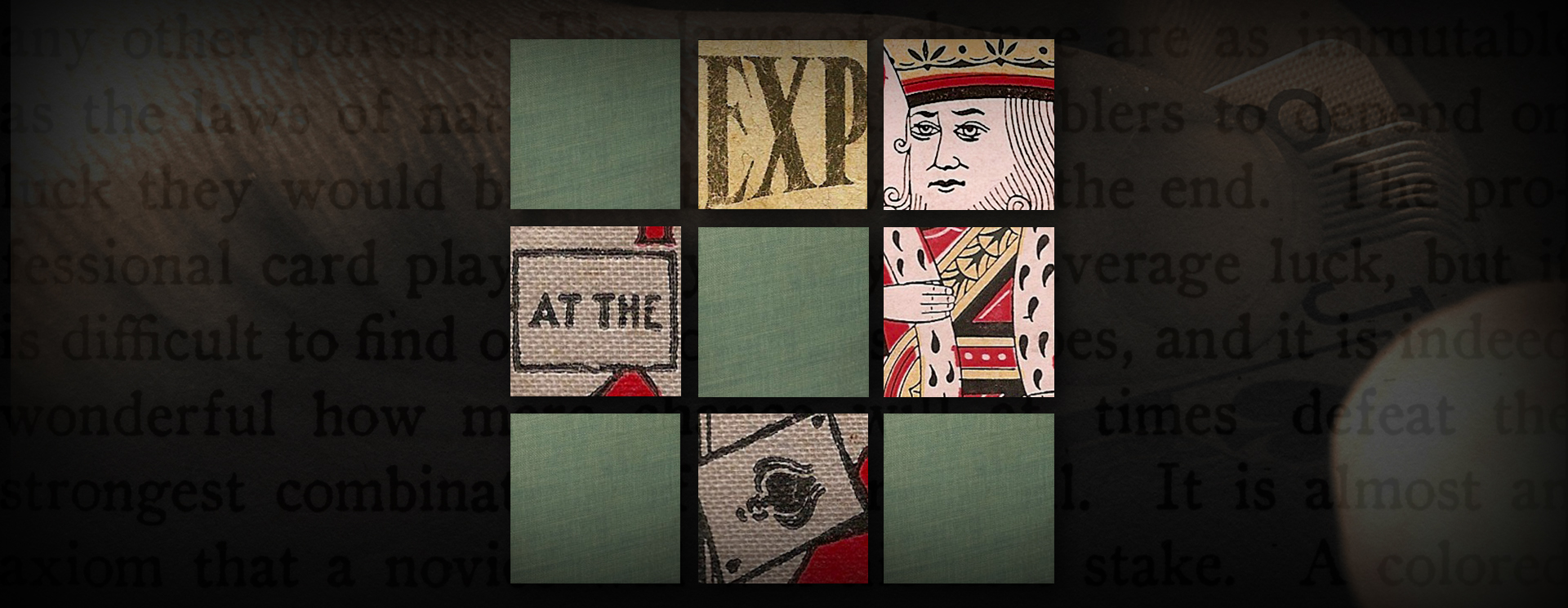 There are many American variations of The Expert at the Card Table. To view each gallery, simply click on any square below to see a slideshow of each gallery, and to learn more about each variant. Under the gallery descriptions, we recommend following the suggested navigation. If you want to come back here, simply click on “American Variants of Erdnase.”