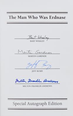 A notable book on S.W. Erdnase and The Expert at the Card Table is The Man Who Was Erdnase, a 1991 publication by Bart Whaley, Jeff Busby and Martin Gardner. This volume is the primary literary “champion” of Gardner’s theory that Erdnase was Milton Franklin Andrews, a card cheat and murderer who committed suicide in 1905. Although modern scholars have largely discredited this theory, the book remains an important source of information on all things Erdnase. This publication exists in two variants, regular cloth and as a deluxe version, which is signed and numbered. (Thank you to Potter & Potter Auctions for the images of the deluxe version.)
