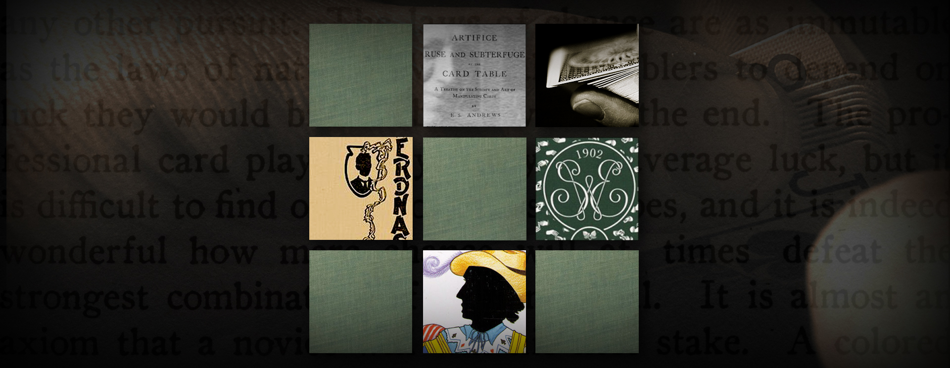 Erdnase has spawned many branches of additional collectibles. We start by first looking at some of the key publications which discuss S.W. Erdnase and The Expert at the Card Table. Next is a gallery that focuses on additional ephemera that relates to S.W. Erdnase, and then we finish with a brief look some of the vast variations of playing cards based on Erdnase.