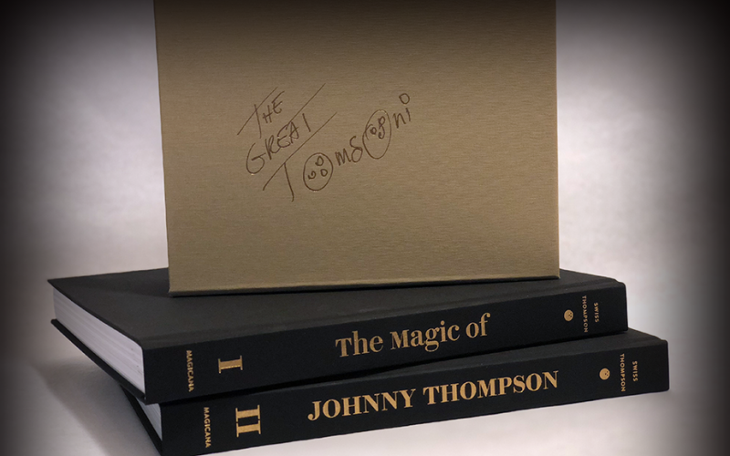 Within the 10 lbs. two-volume slipcased set, there are 78 routines spread over 663 pages with nearly 1,100 photographs. BONUS: Every copy sold has an original Johnny Thompson/The Great Tomsoni signature. EVERY SINGLE ONE! An original. That's Johnny.