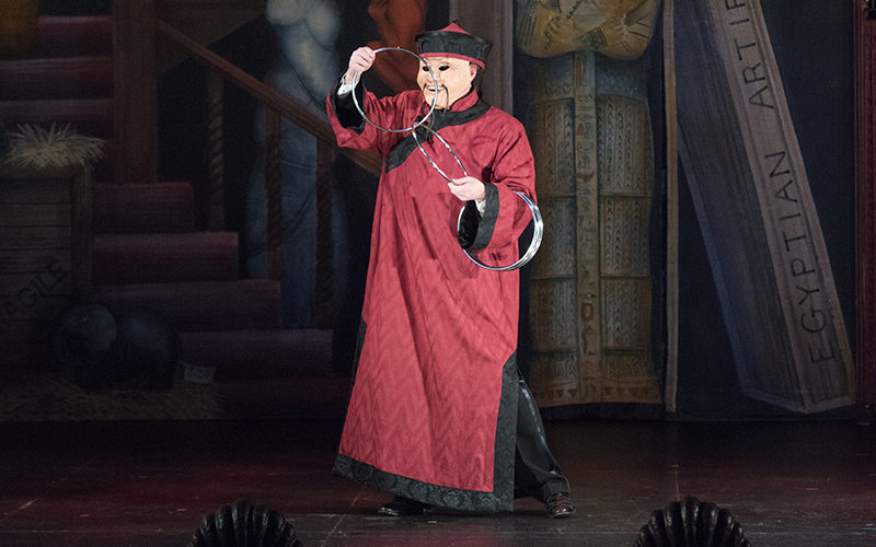 I have performed the Linking Rings for decades, and was inspired by the great Canadian magician Dai Vernon—perhaps the most influential magician of all time—and his approach to the piece. Vernon had performed the piece in Chinese gown and mask (made by his wife, Jeanne Verner) in the 1930s. The mask I used was based on historical masks worn by Chinese performers dating back centuries.