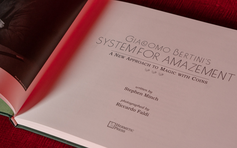 The third is a manual that details the extraordinary coin work of Italian sleight-of-hand wonder, Giacomo Bertini—written by Stephen Minch and published by Hermetic Press (which is now owned by Penguin Magic). Giacomo Bertini's System for Amazement is almost as lovely as the spectacular magic it describes, detailing Bertini’s original approach to coin magic. It includes some fourteen original sleights and techniques, and thirteen ground-breaking routines.