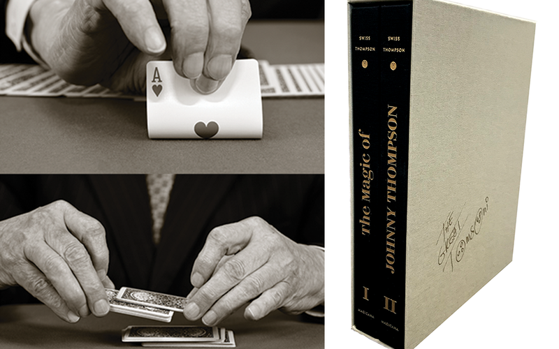 The Magic of Johnny Thompson, written by Jamy Ian Swiss and Johnny Thompson,—the epic 663-page, two-volume slipcased set weighing over nine pounds, featuring seventy-eight routines with nearly 1,100 images, drawn from a lifetime of magic—is finally bound and sealed … and now signed.