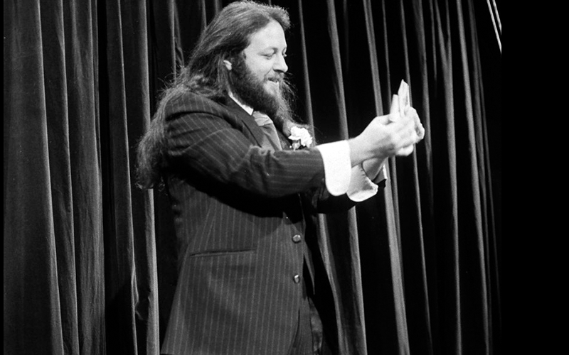 The cheerful ironic distance, the stellar sleight of hand, the palpable intellect behind the sesquipedalian banter—this is the first iteration of Ricky Jay I encountered, on countless television talk shows in the Seventies. A delightful and utterly novel guest on talk shows from Dinah Shore’s to Johnny Carson’s, Jay was already in the midst of a career of opening for rock bands around the country, honing a remarkable array of performance chops under the most challenging conditions imaginable for a man trying to make his living doing card tricks.